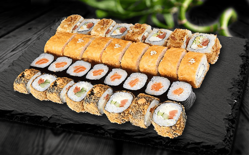 Сет из горячих и холодных роллов, где все роллы с лососем: BBQ с лососем, Горячая Филадельфия, Сяке Маки, Бонито Рору. 32шт. В порцию входит соевый соус. Васаби и имбирь заказываются дополнительно.